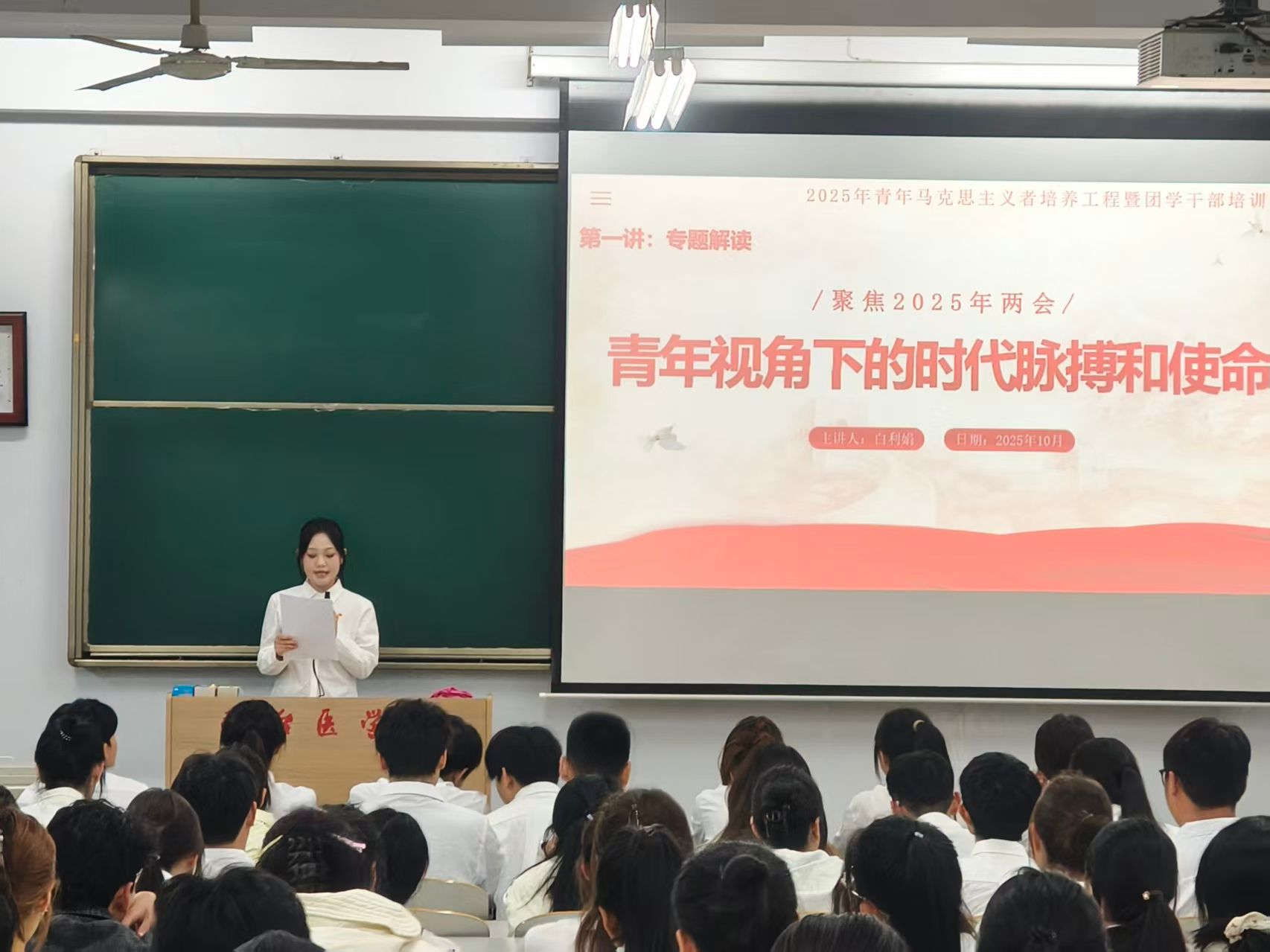 近期,临床医学系举办2025年青年马克思主义者培养工程暨团学骨干培训活动。本次培训汇集130位青马学员参加。分为六讲展开,主要以马克思主义理论,两会精神等为核心。强化团学骨干的理想信念,旨在提升团学骨干组织协调能力,掌握团学工作的方法和要求,锻造一支政治坚定,能力过硬,作风扎实的青年马克思主义团学骨干队伍,发挥学生干部的桥梁作用,为校园团学工作提质。成为校园与社会衔接的纽带,引领青年群体践行时代使命。如今,本次青马班活动圆满收官并顺利结业。