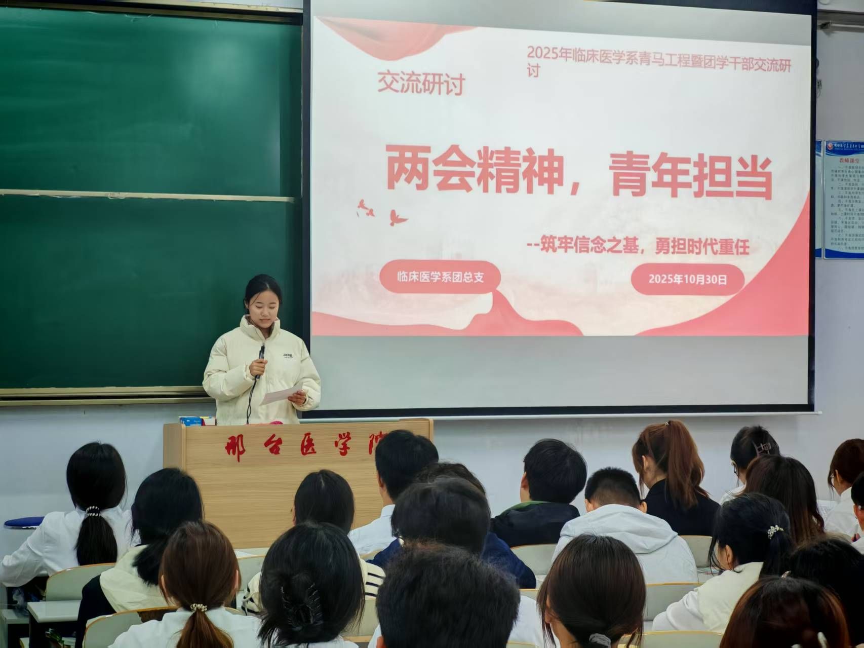 本次临床医学系青马工程暨团学骨干培训,以思想铸魂,能力赋能,实践领航为脉络,既让130名骨干锚定了“医学生+时代建设者”的双重身份,也为校园团学工作储备了政治坚定,本领过硬的青年力量。邀请两位优秀青马学员代表分享自己所学,纷纷表示会以青马精神奔赴未来,将所学知识应用到实际。未来,期待各位骨干以培训所学为底色,以青春实干回应时代召唤,让个人成长与国家发展同频共振,在实现中华民族伟大复兴的征程中,书写更多青春华章!